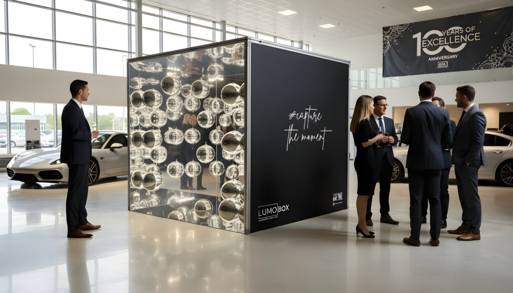 Ob Firmenjubiläum, Weihnachtsfeier, Kundenanlass, Eröffnung oder Produktlaunch – die LumoBox setzt Ihr Unternehmen perfekt in Szene. Mit hochwertiger Optik, Branding-Optionen und einem Hauch Glamour wird sie zum Highlight jedes Events.